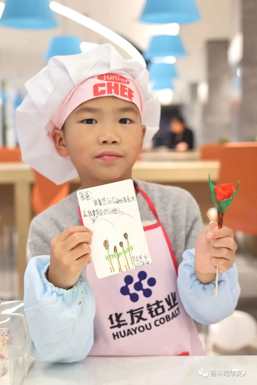 “爸爸,今天我去了您的公司,知道了您生產(chǎn)的產(chǎn)品是很有用的,爸爸真棒!”“爸爸,您累了,工作太忙了,注意休息,我長大后要做華友的接班人!”“媽媽,我以后再也不惹您生氣了,您工作不容易!”……活動最后給爸爸媽媽的一句話環(huán)節(jié)中,小朋友們用真誠的語言表達了對父母的感恩,更為父母是奮斗的華友人而感到自豪。