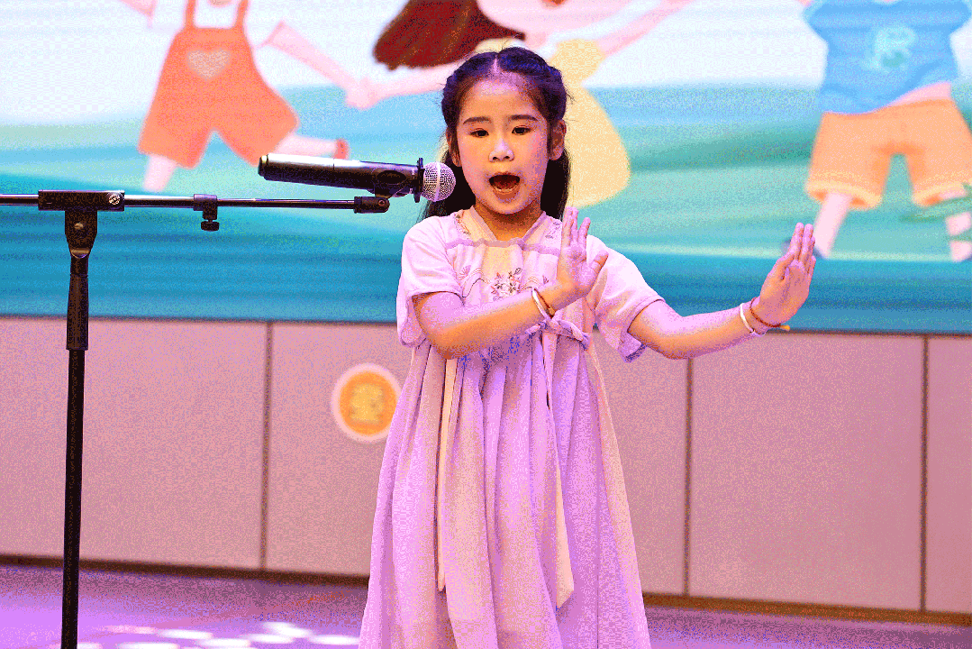 活動(dòng)伊始,幾位小朋友輪番上臺表演,有古典美的胭脂妝表演、有氣勢恢宏的“踏山河”歌唱、有可愛的小豬吃飽飽的表演,亦有古箏和陶笛的樂器展示等等,自信的向在場所有嘉賓展示自己的才藝?,F(xiàn)場觀看表演的家長們相機(jī)聲、掌聲響成一片。