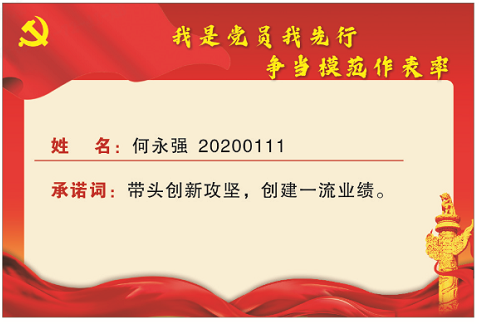近日,華友廣西園區(qū)開展“亮身份、亮職責、亮承諾”主題活動,通過統(tǒng)一制作黨員身份桌牌,引導黨員時刻銘記身份、履行職責,進一步強化黨員意識,發(fā)揮先鋒模范作用,在各個支部內形成黨旗飄起來、黨徽戴起來、黨員干起來的濃厚氛圍。