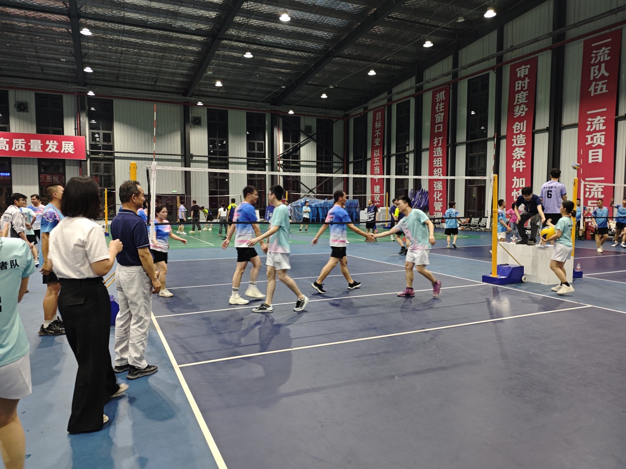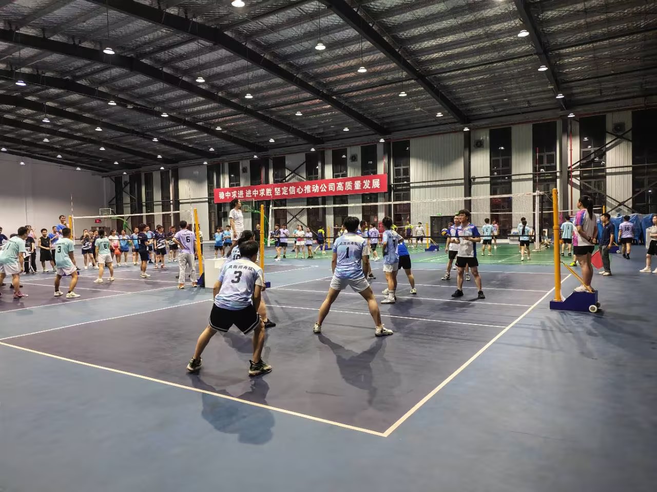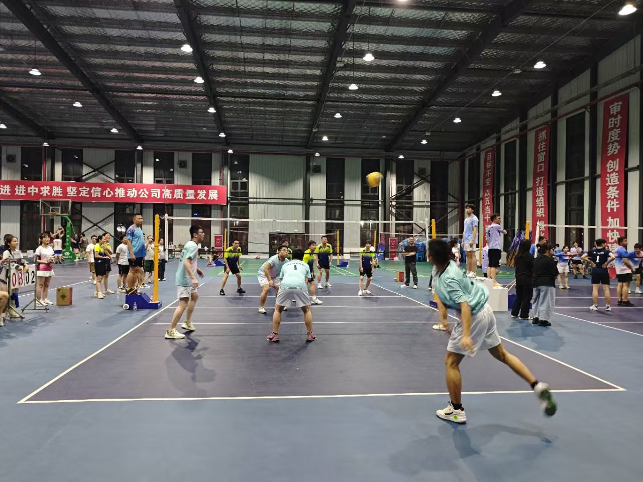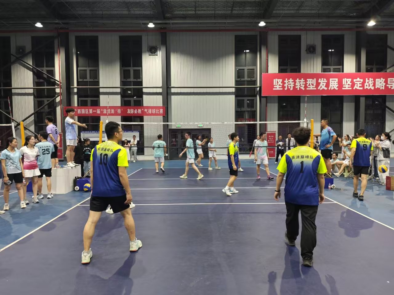 本次比賽持續(xù)5天,前4天為小組循環(huán)賽,各支隊伍在賽場上展開了激烈的角逐,隊員們身姿矯健,發(fā)球、傳球、扣球、攔網(wǎng)各顯神通,無論是剛接觸氣排球的新手隊員迅速掌握發(fā)球、傳球技巧,還是老牌戰(zhàn)隊展現(xiàn)出的戰(zhàn)術(shù)協(xié)作,都讓我們看到了華友人 “敢拼搏、能吃苦、善團結(jié)” 的精神風貌。賽場上的每一次扣殺、每一聲吶喊、每一次擊掌相慶,都成為了園區(qū)里最動人的風景線。他們用汗水詮釋著對氣排球運動的熱愛,用拼搏彰顯著華友人自強不息、追求卓越的精神風貌。觀眾們的加油助威聲此起彼伏,為比賽增添了無限激情與活力。