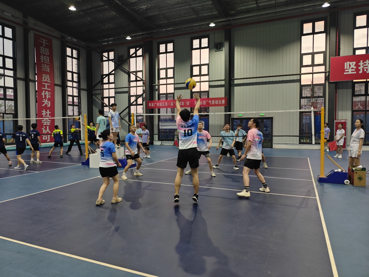 4月28日,華友廣西園區(qū)第一屆“激情澎‘排’ 友你必勝”氣排球比賽在指揮中心體育館圓滿落幕。來自園區(qū)各單位的11支隊伍、裁判員、志愿者及啦啦隊近200人參加此次活動,為園區(qū)員工帶來了一場場精彩絕倫的比賽盛宴。