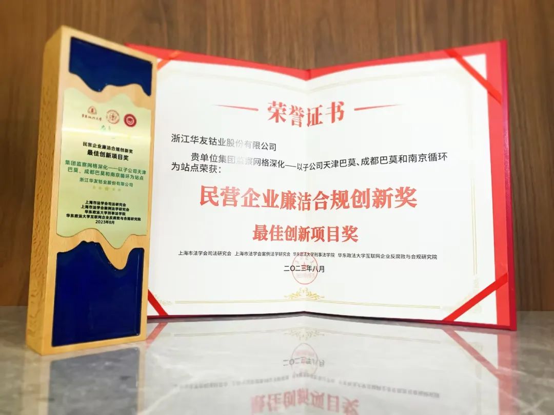 2023年8月3日,第二屆“民營qm球盟會·(中國)球盟會廉潔合規(guī)創(chuàng)新獎(jiǎng)”在華東政法大學(xué)長寧校區(qū)舉行頒獎(jiǎng)盛典,華友鈷業(yè)監(jiān)察網(wǎng)格深化項(xiàng)目榮獲“最佳創(chuàng)新項(xiàng)目獎(jiǎng)”獎(jiǎng)項(xiàng)。