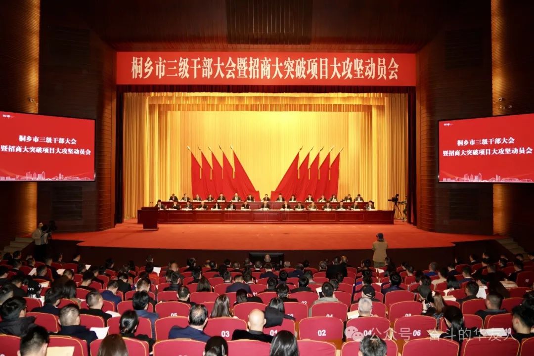 人勤春早功不負(fù),奮斗實(shí)干啟新程。今天(2月17日),桐鄉(xiāng)市召開三級(jí)干部大會(huì)暨招商大突破項(xiàng)目大攻堅(jiān)動(dòng)員會(huì),總結(jié)成績、表彰先進(jìn)、樹立典型、提神鼓勁,動(dòng)員全市上下擼起袖子加油干,重整行裝再出發(fā),奮力書寫中國式現(xiàn)代化的桐鄉(xiāng)篇章,加快建設(shè)數(shù)字文明共富美好新桐鄉(xiāng)。中共桐鄉(xiāng)市委書記于會(huì)游,桐鄉(xiāng)市委副書記、市長王堅(jiān)等四套班子領(lǐng)導(dǎo)出席大會(huì)。集團(tuán)董事長陳雪華參加會(huì)議并于主席臺(tái)就座。