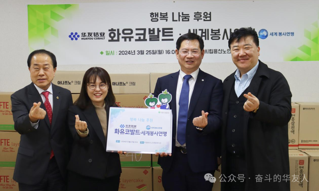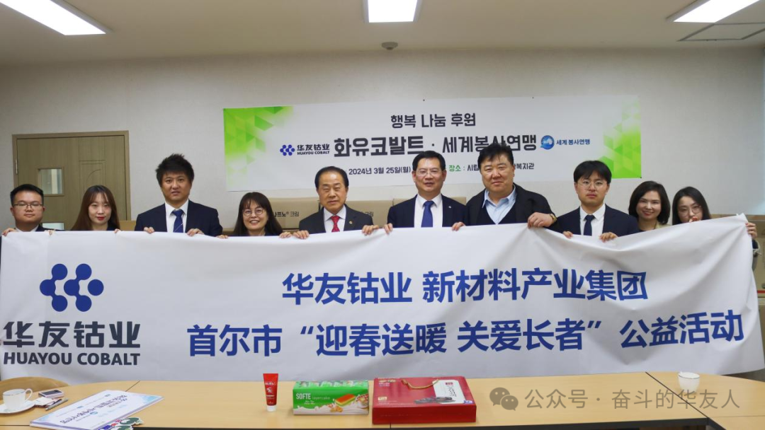 3月25日,華友鈷業(yè)新材料產(chǎn)業(yè)集團(tuán)韓國代表處攜手首爾市議會(huì)金榮鎬議員、世界公益聯(lián)盟洪禎雨會(huì)長一同前往韓國首爾市立龍山老人綜合福祉館,共同開展“迎春送暖,關(guān)愛長者”公益活動(dòng),為長者們送去溫暖和關(guān)懷。