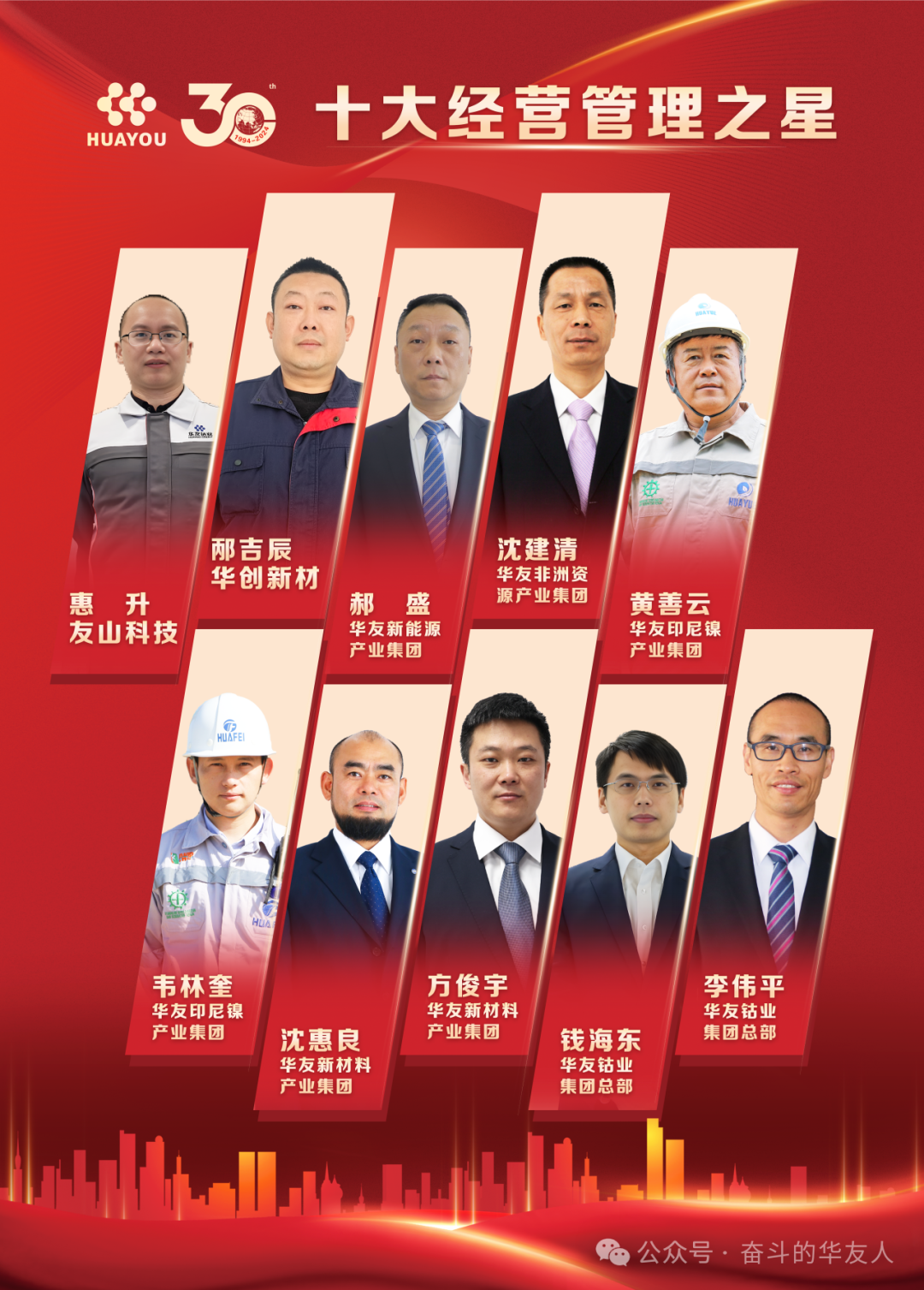 經(jīng)營創(chuàng)造價值,管理成就領(lǐng)先。從永興河畔啟航的一葉扁舟到航行茫茫深海的鋰電巨輪,你們是一座座燈塔,你們是一個個舵手,始終堅守在經(jīng)營的前沿陣地,洞察每一次市場機遇,雕琢每一個戰(zhàn)略布局,復(fù)盤每一場硝煙戰(zhàn)役,不斷提升駕馭發(fā)展的能力,致力于成為全球新能源鋰電材料領(lǐng)導(dǎo)者。你們堅守事業(yè)初心、堅定華友理想、遵從事業(yè)哲學(xué)、踐行華友文化,每一次決策的果敢,每一回挑戰(zhàn)的無畏,每一次舉杯的同慶,都凝聚成華友穩(wěn)健發(fā)展的堅實基石。華友有你們,未來有你們!
