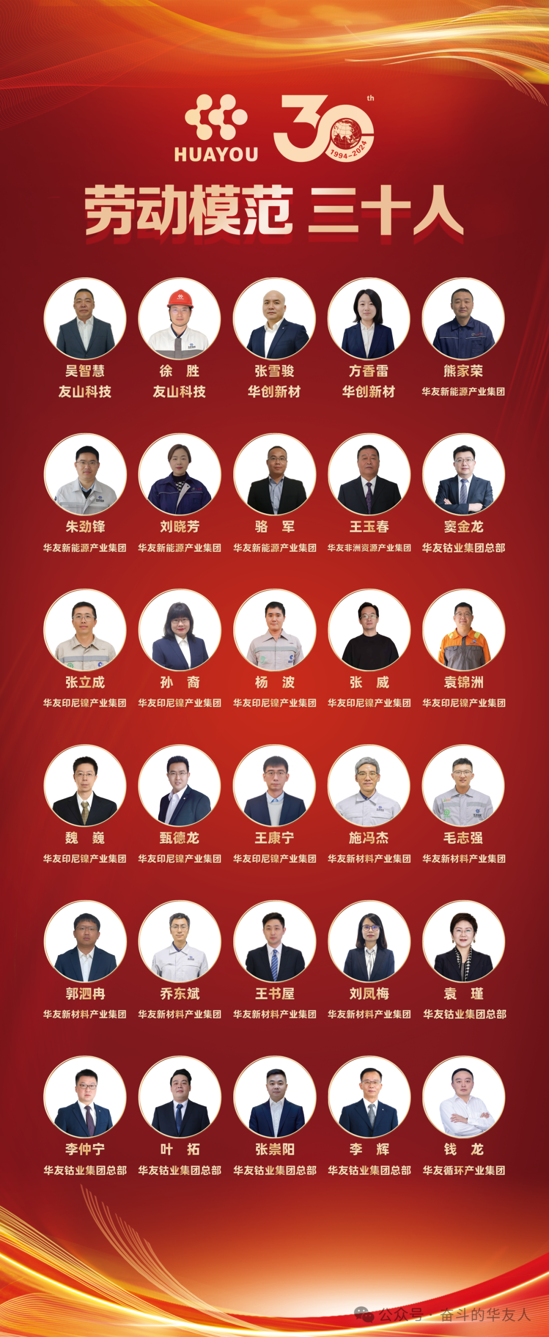 砥礪前行鑄輝煌,風(fēng)雨兼程譜新章。華友自默默蓄力到揚帆起航,三十載崢嶸歲月,涌現(xiàn)出一批又一批奮斗的華友人。12月7日,在華友創(chuàng)業(yè)三十周年慶典上,對三十周年勞動模范、十大經(jīng)營管理之星、十大科技創(chuàng)新之星、十大海外奮斗之星獲得者進(jìn)行隆重表彰。