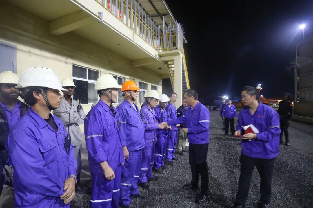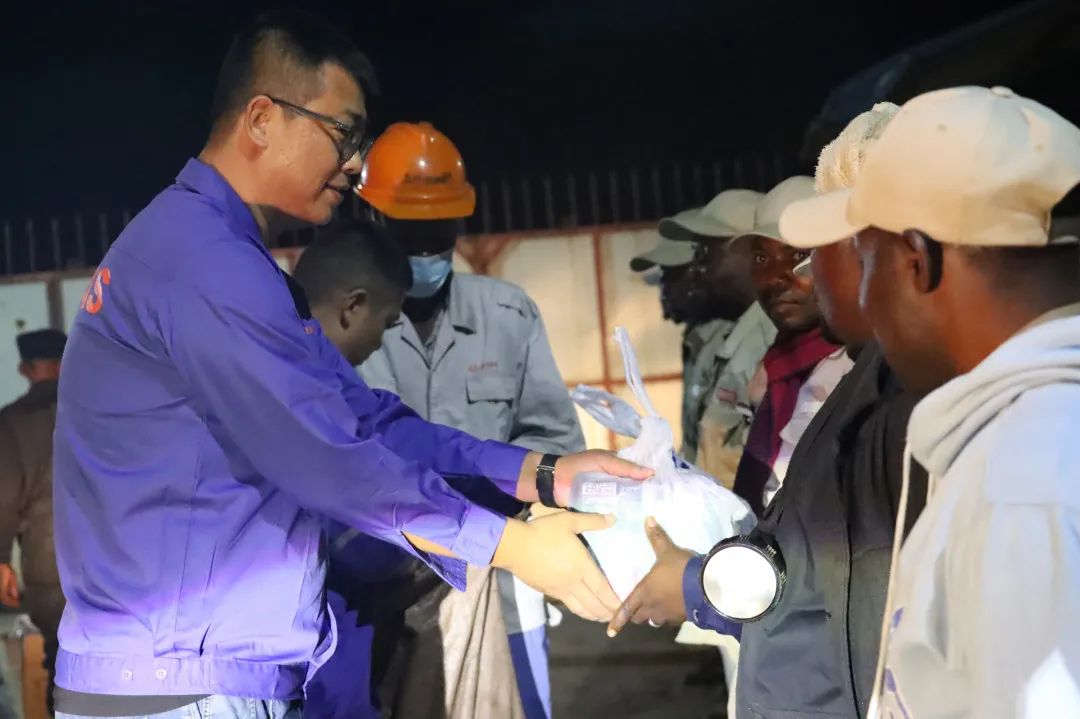 非洲資源產(chǎn)業(yè)集團領(lǐng)導(dǎo)一行,帶著公司滿滿的關(guān)懷,奔赴各個值班崗位。每到一處,領(lǐng)導(dǎo)們都與員工親切握手,將承載著美好祝福的紅包和物資送到他們手中,讓堅守在異國他鄉(xiāng)的員工們感受到家一般的溫暖。