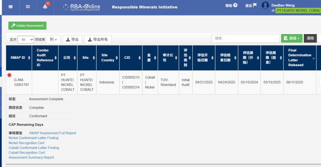 8月,負(fù)責(zé)任礦產(chǎn)倡議(The Responsible Minerals Initiative,簡稱RMI)官方網(wǎng)站發(fā)布消息,華飛鎳鈷(印尼)有限公司成功通過負(fù)責(zé)任礦產(chǎn)保證流程(Responsible Minerals Assurance Process,簡稱RMAP)審核,華飛成為印度尼西亞同時對鎳、鈷金屬供應(yīng)鏈開展礦產(chǎn)供應(yīng)鏈盡責(zé)管理并通過 RMAP 審核的冶煉qm球盟會·(中國)球盟會。