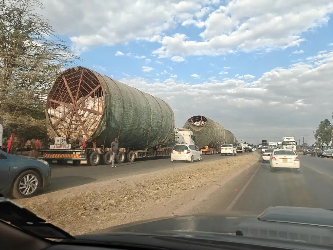 而這座“巨龍”的誕生之路,布滿荊棘。2025年6月24日,轉(zhuǎn)型窯首吊現(xiàn)場(chǎng),起重指揮員的哨聲劃破長(zhǎng)空。直徑5.6米、長(zhǎng)達(dá)110米的轉(zhuǎn)型窯被切割成11段,歷經(jīng)三個(gè)月的海上漂泊才運(yùn)抵現(xiàn)場(chǎng)?!澳撬掖型窘拥脚R時(shí)任務(wù),在海上多漂了兩個(gè)月。這種完全不可控的物流是我們項(xiàng)目建設(shè)中的‘頭號(hào)大敵’”鋰鹽項(xiàng)目部副總經(jīng)理苦笑著搖頭,“我們每天都盯著船舶軌跡圖,心情就像坐過(guò)山車?!表?xiàng)目建設(shè)有著復(fù)雜的物流鏈路:從國(guó)內(nèi)發(fā)出的貨物經(jīng)過(guò)長(zhǎng)途海運(yùn),經(jīng)過(guò)南非德班港卸貨,完成清關(guān)后,還需再次在津巴邊界進(jìn)行二次通關(guān)。此后,才是更為嚴(yán)峻的、長(zhǎng)達(dá)1700公里的陸路運(yùn)輸。“從德班到現(xiàn)場(chǎng)的這1700公里,每一步都充滿變數(shù)?!彼a(bǔ)充道,語(yǔ)氣凝重,“車禍、超限運(yùn)輸?shù)膶徟?、乃至?dāng)?shù)貜?fù)雜的人文環(huán)境,任何一環(huán)出現(xiàn)意外,都可能導(dǎo)致工期無(wú)限期延遲。”