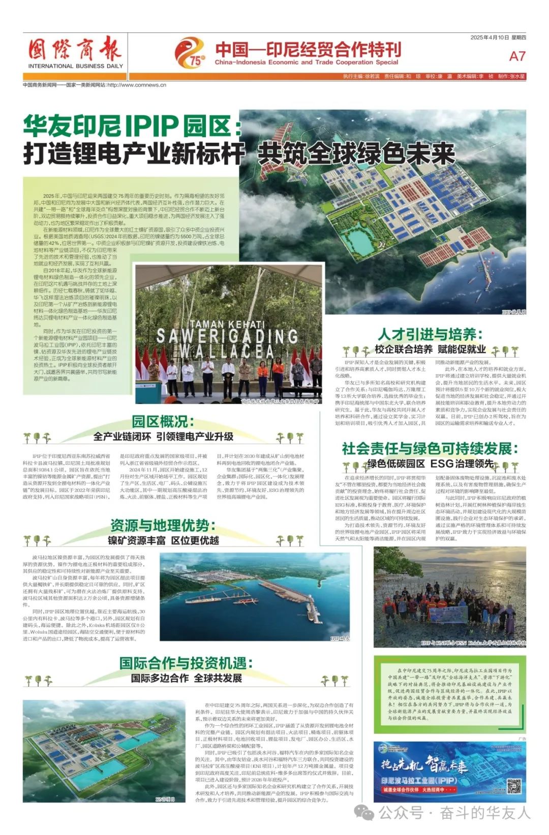 《國(guó)際商報(bào)》特刊——華友印尼IPIP園區(qū): 打造全球鋰電產(chǎn)業(yè)新標(biāo)桿,共筑綠色未來(lái)